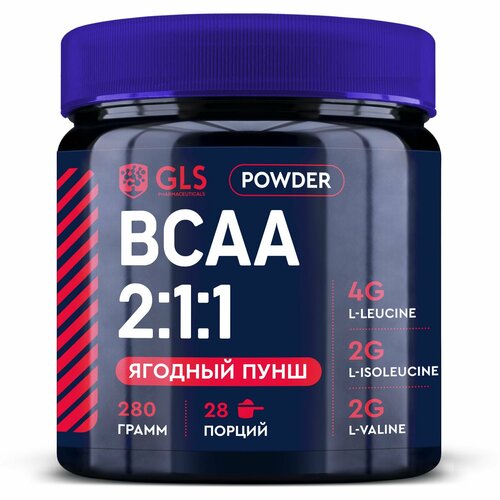 BCAA 2:1:1 аминокислоты для набора массы GLS со вкусом ягодного пунша, 280 г