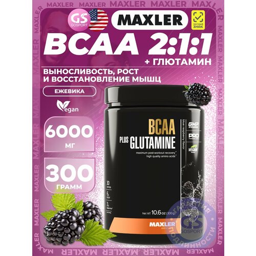 BCAA + Glutamin MAXLER (USA) BCAA 6000 mg + Glutamine 300 г, Ежевика