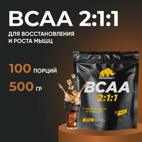 BCAA спорт питание порошок 500 гр, PrimeKraft BCAA 2:1:1 , вкус: кола