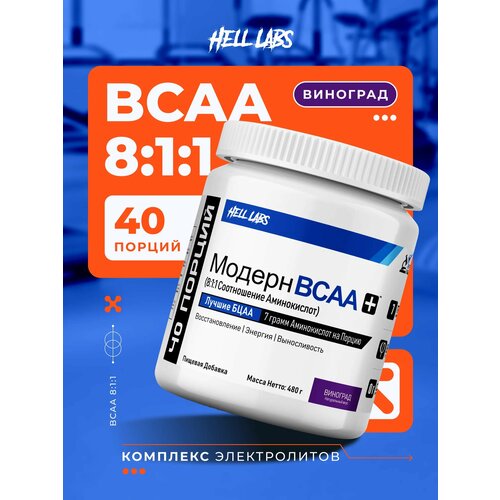 Hell Labs Modern BCAA, Supreme 8:1:1 аминокислоты комплекс + электролиты 480 г (Голубая малина)