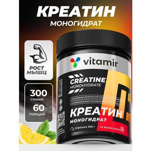 Креатин моногидрат VITAMIR PRO / Creatine monohydrate, для набора мышечной массы / Порошок 300 г, со вкусом лимона