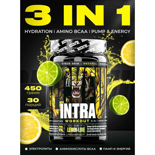 Предтрен в порошке Reckful Intra Workout 450 гр со вкусом лимон-лайм.