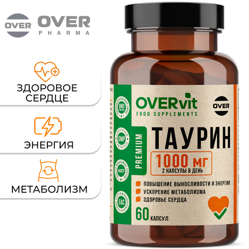 Таурин, для сердечно-сосудистой системы, для зрения, аминокислоты, для выносливости, 60 капсул