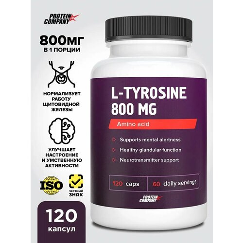 Тирозин 800 мг. Витамины для щитовидной железы. Аминокислоты, от стресса, для мозга. для женщин, для мужчин. л тирозин, для похудения, l tyrosine. 120 капсул