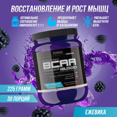 Ultimate BCAA 12000 Powder Flavored 228g (Blue Raspberry), Аминокислотный комплекс бца, 228 грамм (ежевика)