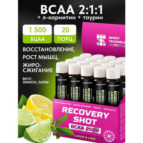 ВСАА 2500, SPORTTECH, лимон-лайм, 20 ампул*25мл, рост мышц, памп, быстрое восстановление, похудение