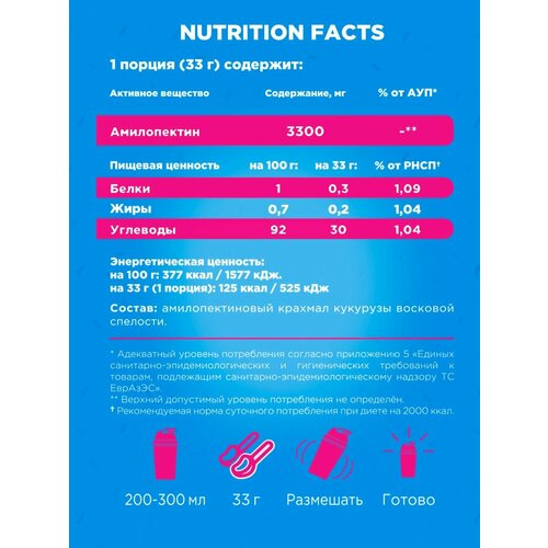 Fitrule Amylopectin 800g – это вид сложных углеводов, имеющий более высокий и пролонгированный энергетический потенциал, чем простая глюкоза или сахар. Обеспечивает организм быстрой энергией во время нагрузки и восполняет запасы гликогена в мышцах после нее.