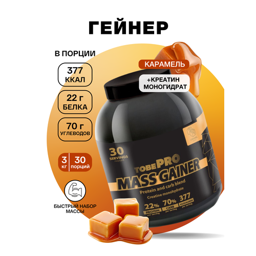 Гейнер TobePRO MASS GAINER для набора массы Карамель, 3 кг/30 порций