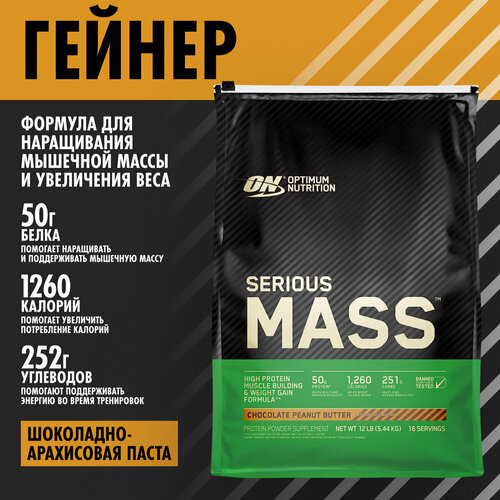 ON Serious Mass 12lb (Chocolate Peanut Butter) - Гейнер 5440 грамм, для набора массы, ( Шоколад-арахисовая паста )