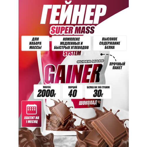 Organic System Гейнер высокоуглеводный со вкусом Шоколад 2000г