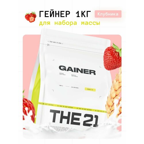 THE 21 Gainer Гейнер Клубника / Gainer / Спортивное питание для набора массы веса медленными быстрыми углеводами, 1кг
