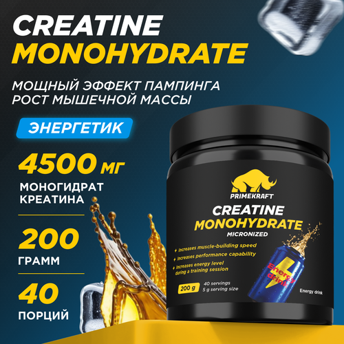 Креатин Моногидрат Микронизированный PRIMEKRAFT Creatine Monohydrate Micronized, Энергетик, банка 200 гр / 40 порций