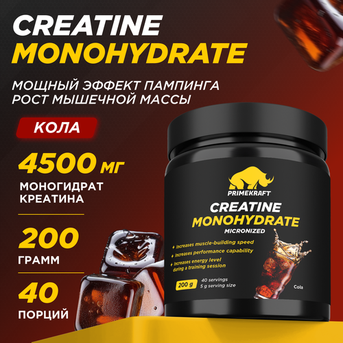 Креатин Моногидрат Микронизированный PRIMEKRAFT Creatine Monohydrate Micronized, кола, банка 200 гр / 40 порций
