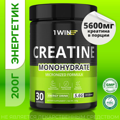 Креатин моногидрат порошок 1WIN, Creatine Monohydrate, Вкус Апельсин, 30 порций, спортивное питание для набора массы тела