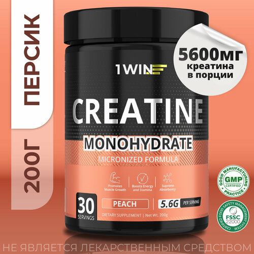 Креатин моногидрат порошок 1WIN, Creatine Monohydrate, Вкус Персик, 30 порций, спортивное питание для набора массы тела