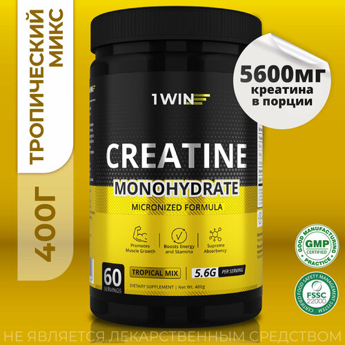 Креатин моногидрат порошок 1WIN, Creatine Monohydrate, Вкус Тропик, 60 порций, спортивное питание для набора массы тела