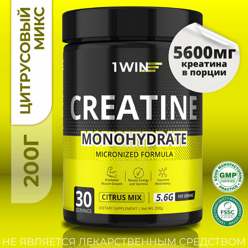 Креатин моногидрат порошок 1WIN, Creatine Monohydrate, Вкус Цитрусовый микс, 30 порций, спортивное питание для набора массы тела