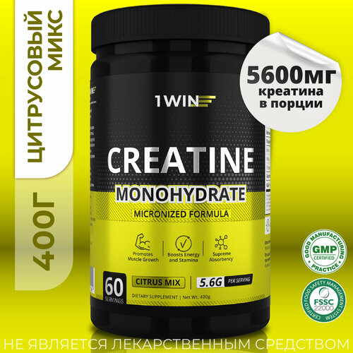 Креатин моногидрат порошок 1WIN, Creatine Monohydrate, Вкус Цитрусовый микс, 60 порций, спортивное питание для набора массы тела