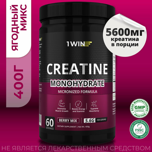Креатин моногидрат порошок 1WIN, Creatine Monohydrate, Вкус Ягодный микс, 60 порций, спортивное питание для набора массы тела