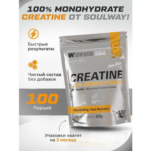 Креатин моногидрат порошок 500 гр 100 порций, спортивное питание для набора мышечной массы