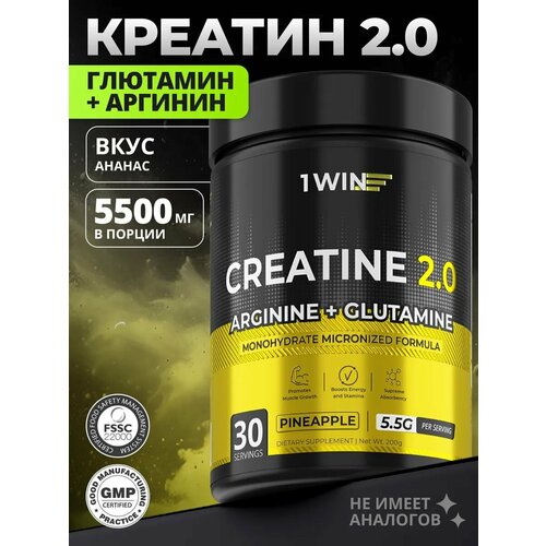 Креатин моногидрат порошок + глютамин + аргинин, спортивное питание, вкус Ананас, 200г, 30 порций