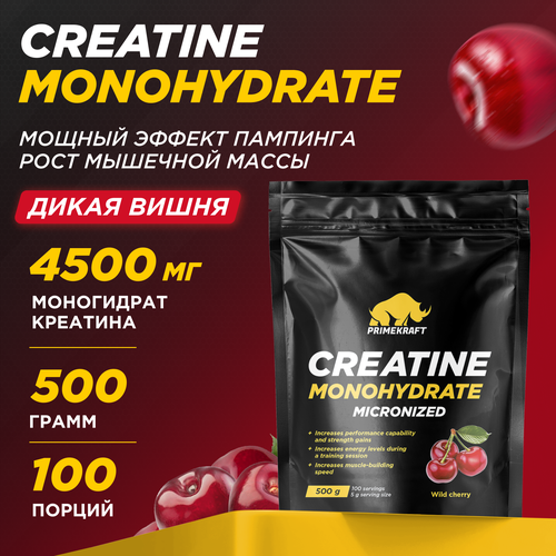Креатин Моногидрат PRIMEKRAFT Creatine Monohydrate Micronized, со вкусом wild cherry (дикая вишня), 500 гр / 100 порций