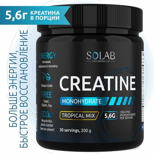 SOLAB Креатин моногидрат порошок 30 порций, Creatine Monohydrate, вкус тропик, 200 гр спортивное питание