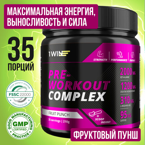 1WIN Предтренировочный комплекс энергетик Pre-workout, вкус Фруктовый пунш, 35 порций