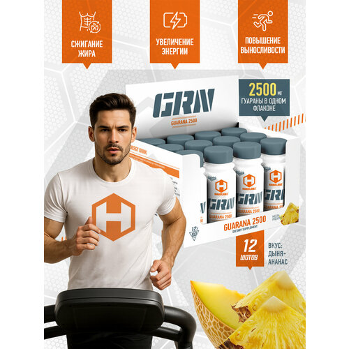 Гуарана Hardlabz экстракт 2500 жидкая, энергетик, ампулы-шоты 12 шт. по 60мл, Дыня-Ананас