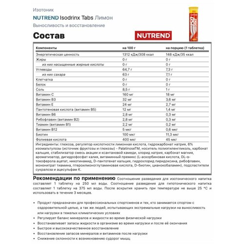 Изотоник NUTREND Isodrinx Tabs 6 туб, Лимон