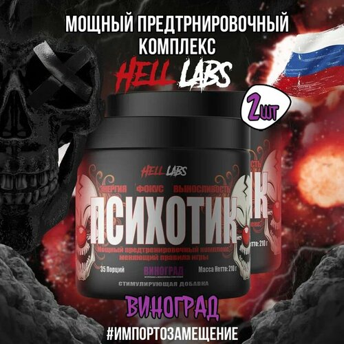 Предтренировочный комплекс Hell Labs Psychotic, 420гр, 2 банки (Виноград)