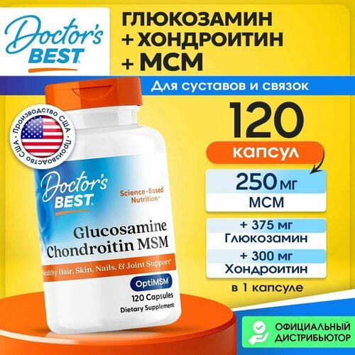 Doctor's Best Glucosamine Chondroitin MSM with OptiMSM, Глюкозамин + Хондроитин + МСМ для суставов и связок, кожи, волос и ногтей, 120 растительных капсул