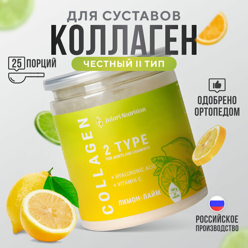 Гидролизованный коллаген 2 типа для суставов, 25 порций, 100 гр, вкус лимон-лайм