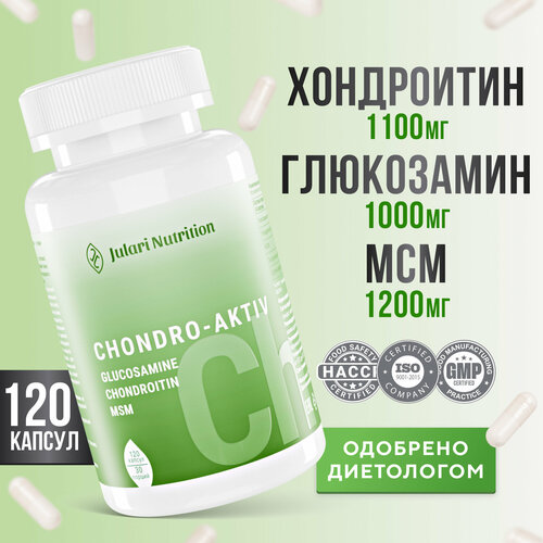 Комплексная пищевая добавка CHONDRO-AKTIV ( МСМ, глюкозамин, хондроитин) от Julari Nutrition. Область применения: в качестве комплексной добавки к пище - в виде источника хондропротекторов, гиалуроновой кислоты. Способствуют: уменьшению воспаления и болезненности в суставах; увеличению подвижности суставов; ускорению регенерации хрящевой ткани; защите суставного хряща. Являются источником для образования хрящевого матрикса и соединительной ткани, способствуя их восстановлению. Метилсульфонилметан (МСМ) является источником биологически доступной для организма серы - компонента белков, составляющих все соединительные ткани. МСМ снижает риск развития воспалительных процессов, ускоряет синтез коллагеновых белков и помогает поддерживать суставы в здоровом состоянии. Глюкозамин и хондроитина сульфат принимают участие в синтезе соединительной ткани. Глюкозамин является структурным компонентом для образования (синтеза) других компонентов хрящевых структур, тормозит развитие дегенеративных процессов в суставах, восстанавливает их функцию. Введение экзогенного глюкозамина усиливает выработку хрящевого матрикса. Хондроитина сульфат натрия служит дополнительным субстратом для образования здорового хрящевого матрикса, входит в состав синовиальной жидкости, которая обеспечивает скольжение суставных поверхностей, а также осуществляет питание хряща и способствует снижению внестероидных противовоспалительных препаратов. Гиалуроновая кислота входит в состав суставной жидкости, где выполняет роль смазочного вещества, уменьшая трение между суставными поверхностями, входит в состав хряща, где выполняет «рессорную» функцию (поддерживает устойчивость хрящевой ткани к компрессии), является важным компонентом синовиальной жидкости, определяя ее вязкоэластические свойства. Она формирует на всей внутренней поверхности покрывающий слой, который защищает суставные хрящи и синовиальную оболочку от механических повреждений, а также от свободных радикалов и факторов воспаления. На поверхности слизистых оболочек гиалуроновая кислота формирует тонкий полупроницаемый защитный слой, покрывая нервные окончания и предотвращая раздражение, стимулирует образование коллагена. Помимо этого, для поддержания здоровья суставов и связок, рекомендуем также принимать куриный коллаген 2 типа. Коллаген капсулы или коллаген порошок - это прекрасный способ укрепления суставов и связок, улучшения состояния кожи и волос. Коллаген для суставов дополнительно питает организм и помогают укрепить соединительную ткань.