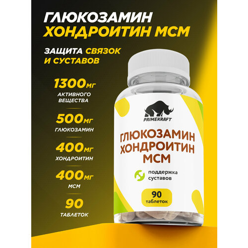 Глюкозамин Хондроитин МСМ PRIMEKRAFT Glucosamine Chondroitin MSM / 90 таблеток / Добавка для суставов и связок