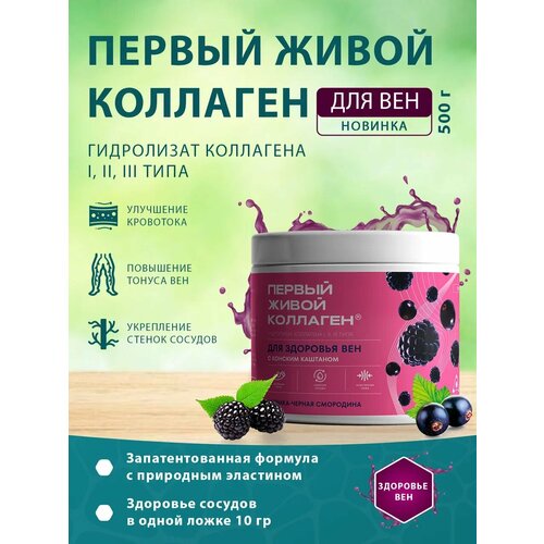 Первый Живой Коллаген для вен с соком ежевики и черной смородины