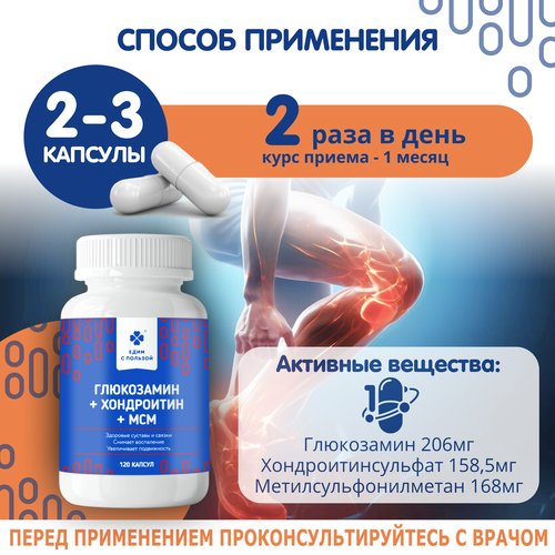 Препарат для суставов и связок , Глюкозамин Хондроитин МСМ в капсулах, витамины для суставов, связок и хрящей / 120 штук