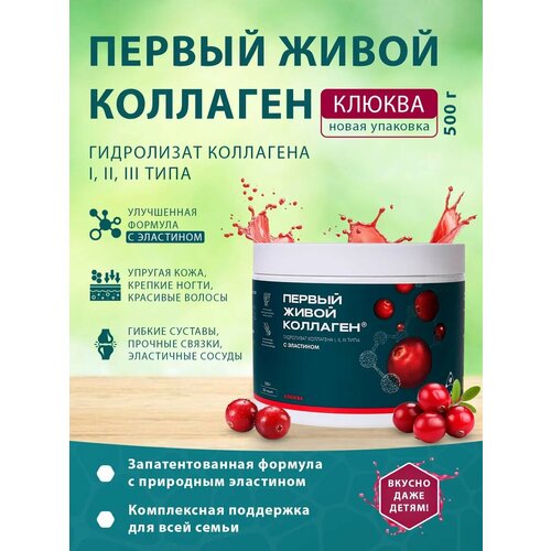 Живой коллаген с эластином от бренда COLLA GEN , вкус клюква, для укрепления связок и суставов, объём 500 гр.