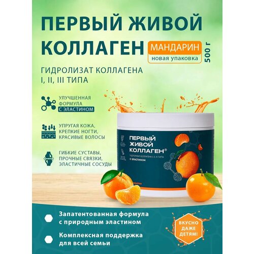 Живой коллаген с эластином от бренда COLLA GEN , вкус мандарин, для укрепления связок и суставов, объём 500 гр.