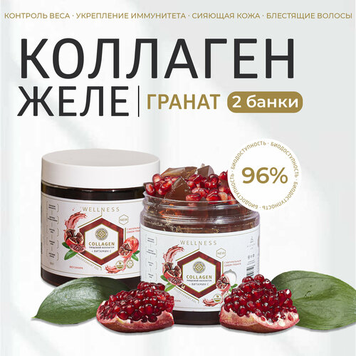 Живой пищевой коллаген в желе (коллаген не порошок), 96% усвояемости, с натуральным соком граната 500 г. Для суставов, связок, волос, кожи, ногтей, улучшения обмена веществ / Collagen Live Wellness
