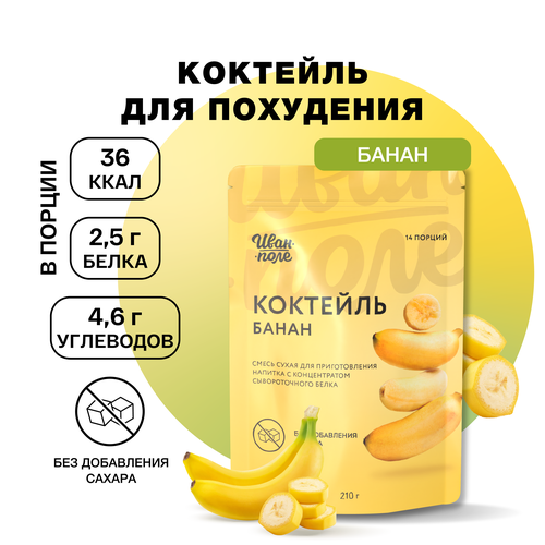 Коктейль молочный "Банан", Иван-поле, протеиновый белковый без сахара, 210 г