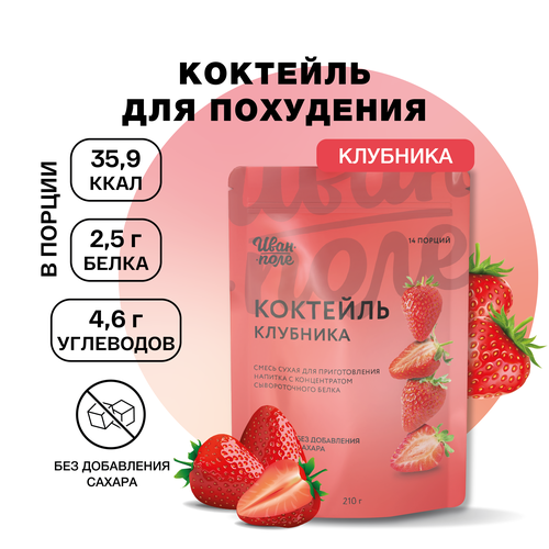 Коктейль протеиновый "Клубника", Иван-поле, белковый коктейль без сахара, 210 г