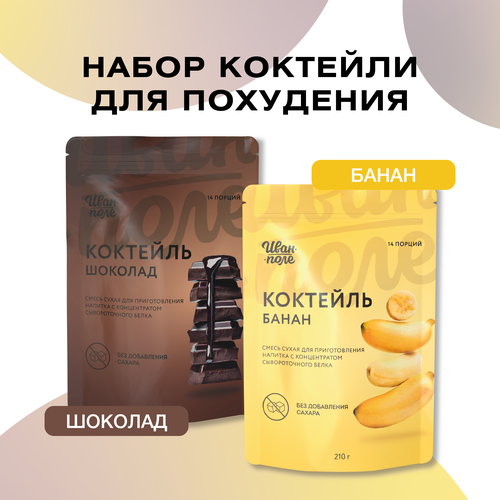 Набор коктейлей протеиновых "Шоколад и Банан", Иван-поле, белковый молочный без сахара, 420 г