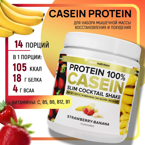 Протеин aTech Nutrition Casein Protein, 420 гр., клубника-банан