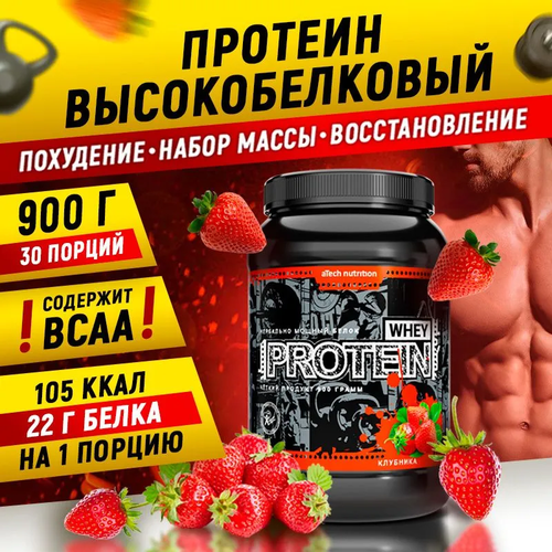 Протеин aTech Nutrition Whey Protein 100%, 900 гр., клубника