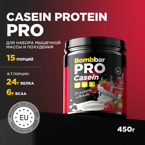 Протеин BOMBBAR PRO Casein, 450 гр., клубничный милкшейк