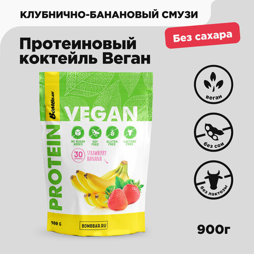 Протеин BOMBBAR VEGAN Protein, 900 гр., клубнично-банановый смузи