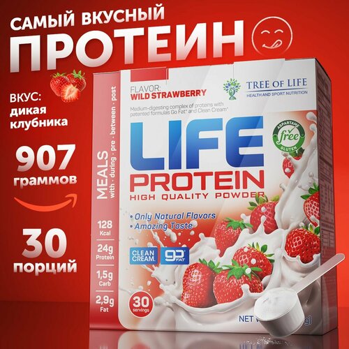 Протеин изолят сывороточный life Protein Вкусный белковый коктейль "Клубника" здоровое и красота питание, похудение, сушка и набор массы, 907 гр, 30п.