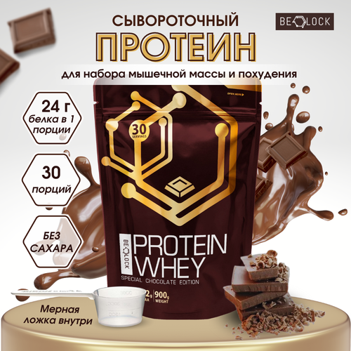 Протеин сывороточный BELOCK, whey protein, протеиновый коктейль без сахара, шоколад, 900 гр, 30 порций