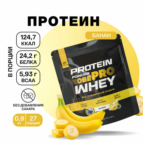 Протеин сывороточный белок "Банан с BCAA" WHEY protein TobePRO, Иван-поле, спортивное питание без сахара, 900г